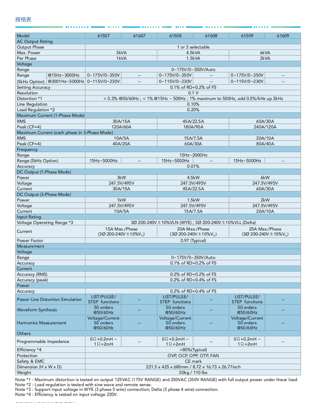 Chroma进阶可编程交流电源MODELMODEL 61509/61508/61507/ 61609/61608/61607