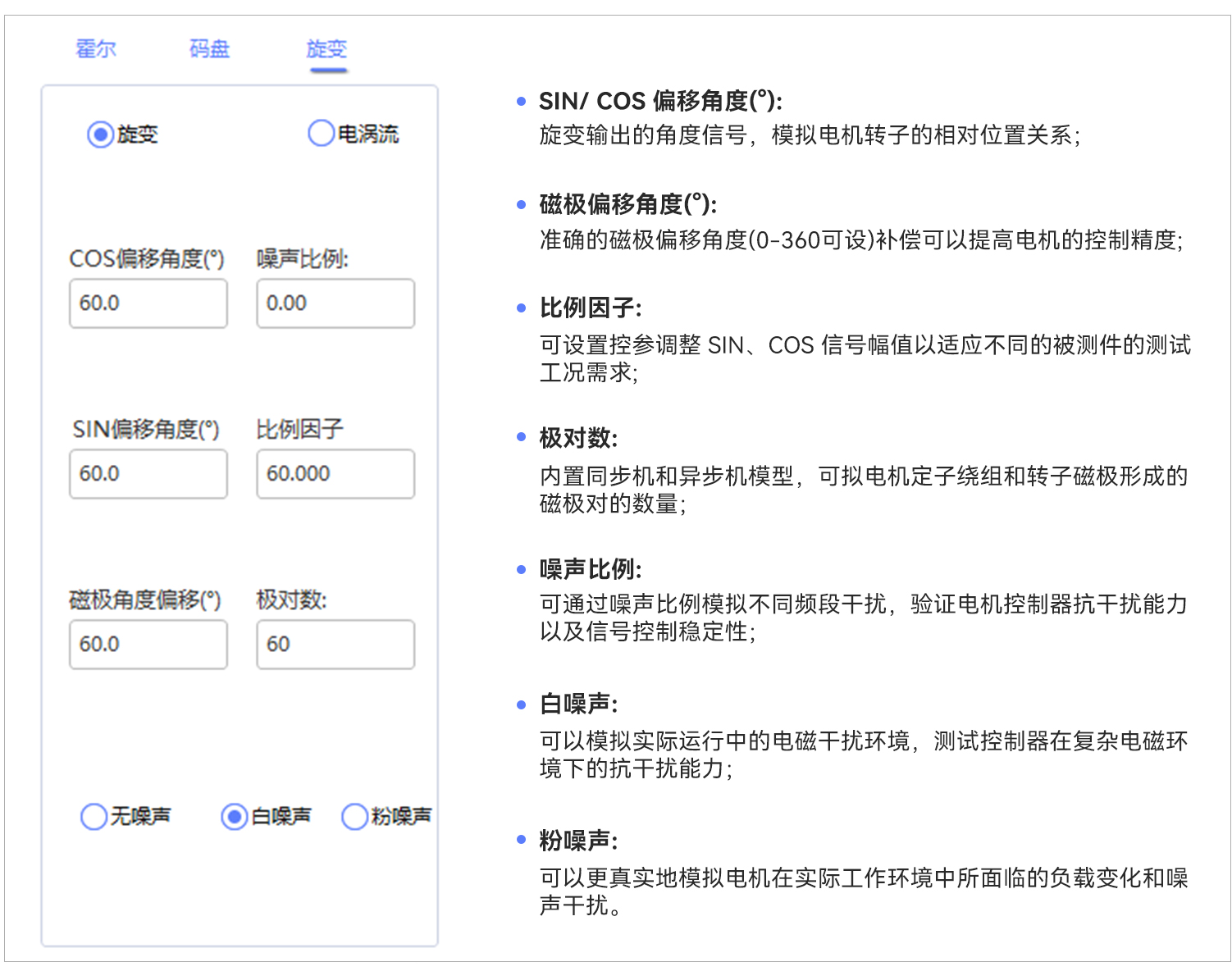 | M2000-MS电机模拟器位置传感器——旋变、电涡流设置界面以及核心控参