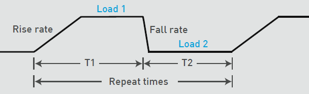 用户可于动态拉载模式下设定轻/重负载的重复次数,范围为1~65,535,当设定重复次数为一次时,负载电流则会进行一脉冲电流的拉载,非常适合应用于测试保险丝、开关组件、同轴电缆线、继电器与电池的瞬间大电流耐受程度。